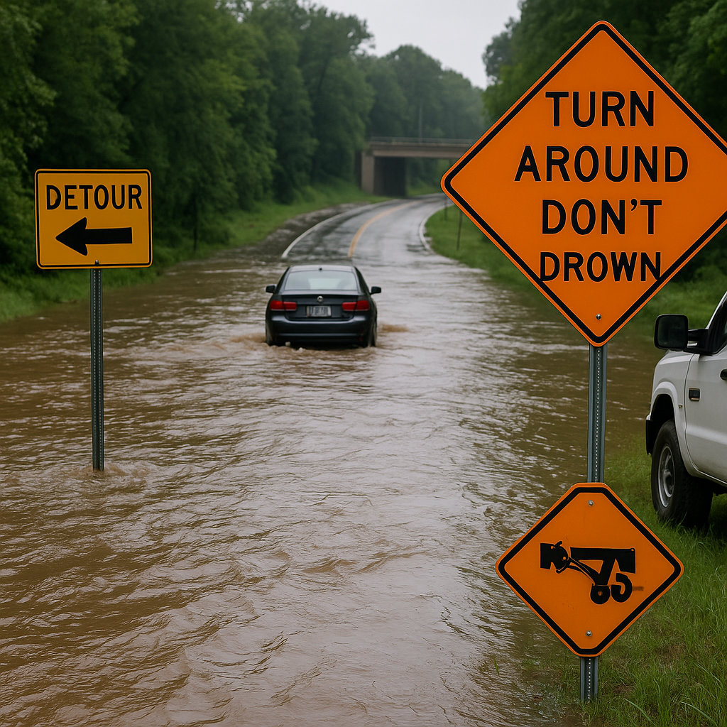 Evacuate to higher ground if safe and call for recovery—don’t restart a flooded engine.
