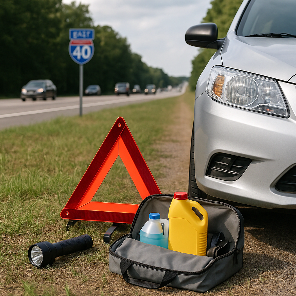 Fluids, tires, wipers, and battery test. Pack triangles and a flashlight.