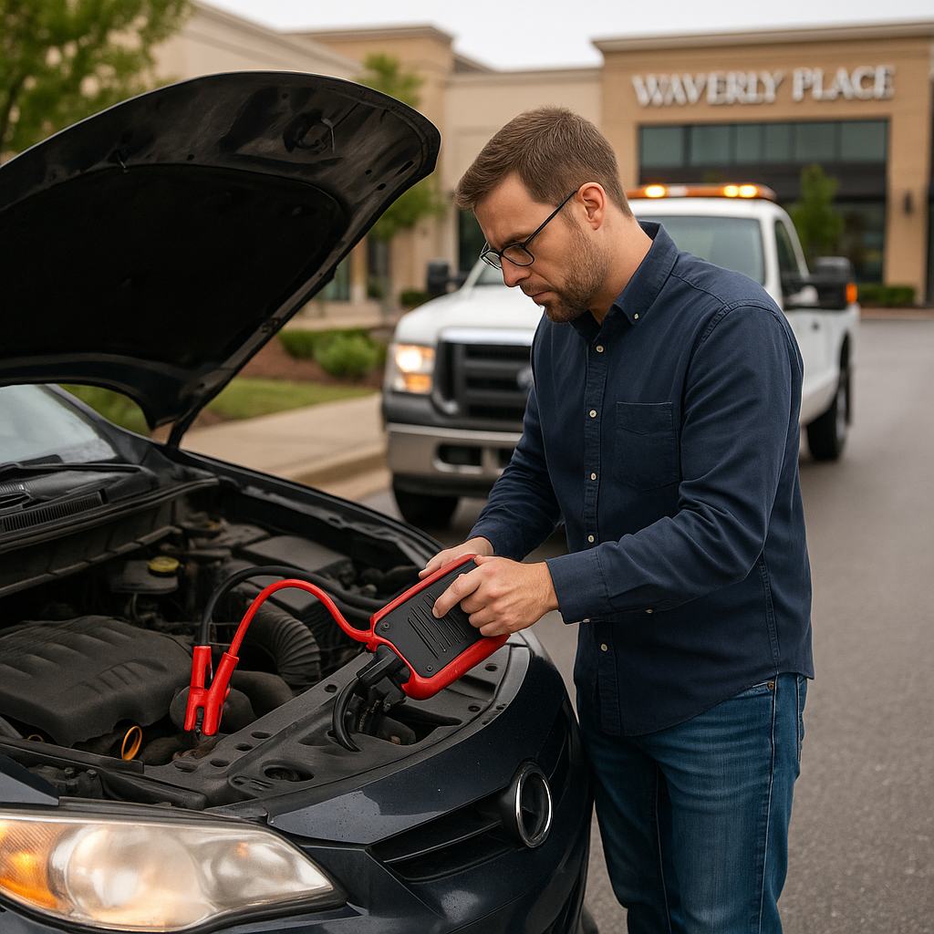 Dim lights/slow crank = low voltage; check for loose terminals.