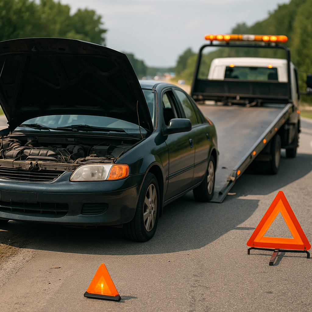 Sudden stalls on I-40 or Cary Towne Blvd are risky. Signal, coast right, and call a trusted local tow.